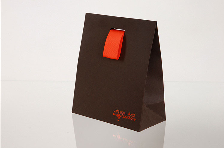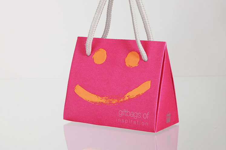 Eine Tasche, die lächelt. Diese ausgeklügelte Geschenkverpackung im Taschen-Look eignet sich für alle Arten an Präsenten, Give-Aways und Aufmerksamkeiten. Weitere verfügbare Verschlussvarianten sind Stecklaschen, Klettverschlüsse und Bänder in allen Farben und Ausführungen.